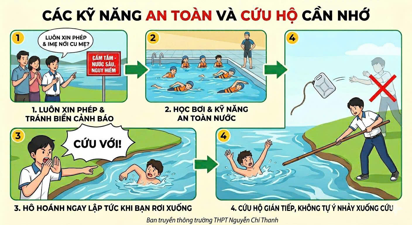 • Nên tham gia các lớp học bơi, học kỹ năng an toàn dưới nước để tự bảo vệ mình.