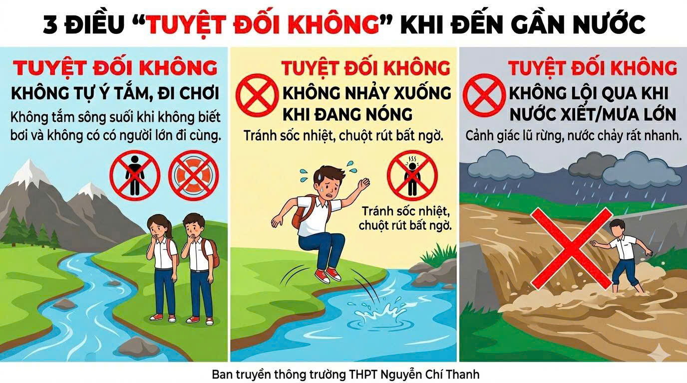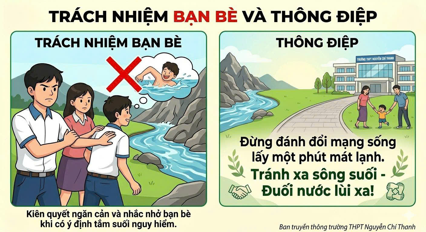 • Hãy là những người bạn có trách nhiệm: Kiên quyết ngăn cản và nhắc nhở khi thấy bạn bè mình có ý định đi tắm suối tại các khu vực nguy hiểm.