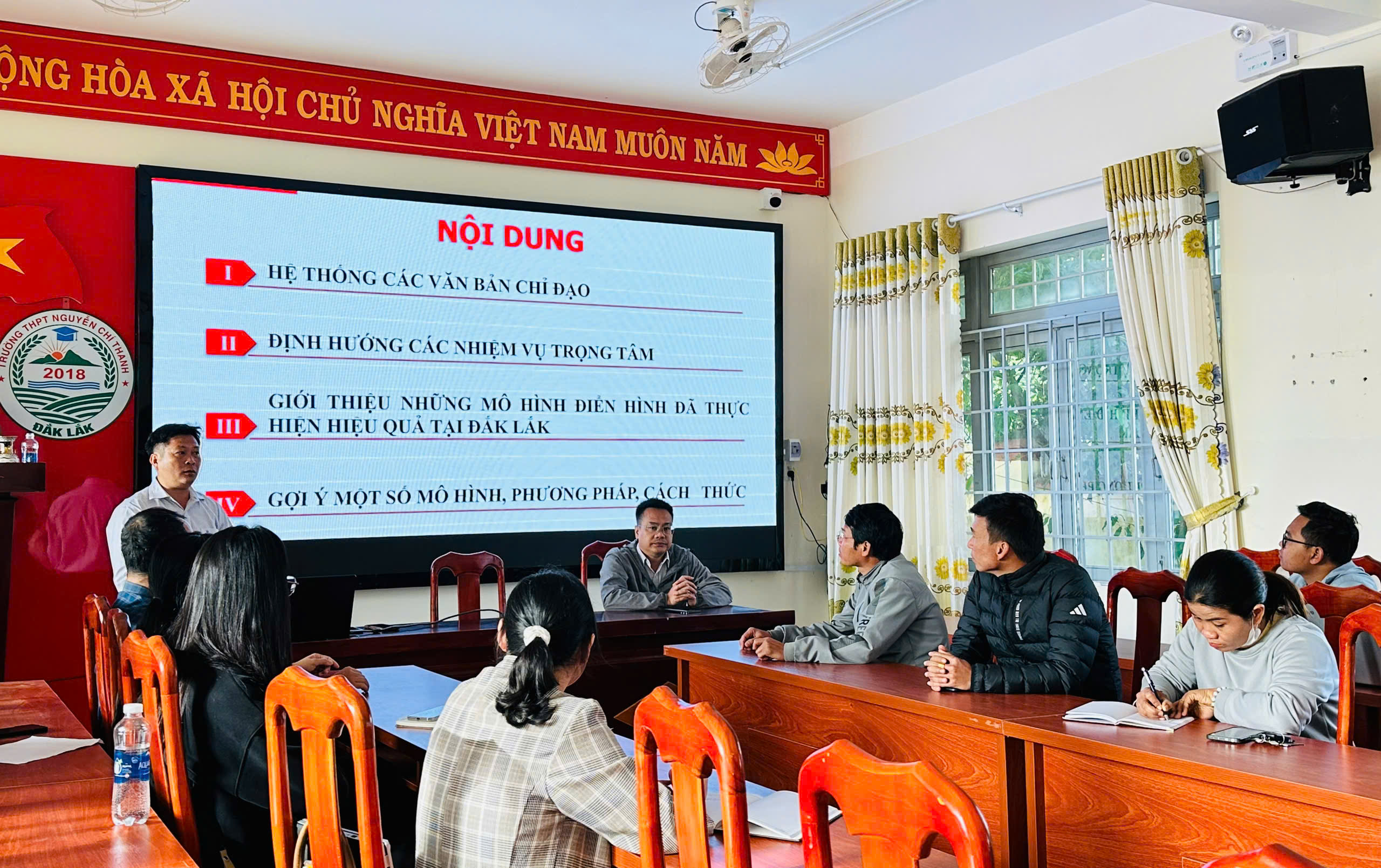 Điểm nhấn của buổi sinh hoạt là việc giới thiệu các mô hình chuyển đổi số tiêu biểu, các cách làm hay, hiệu quả trong Phong trào “Bình dân học vụ số” đang được triển khai tại tỉnh Đắk Lắk, góp phần gắn tuyên truyền với hành động cụ thể, thiết thực; Giới thiệu các công cụ hỗ trợ dạy học hiện đại giúp giáo viên tối ưu hóa việc giảng dạy, thiết kế bài giảng sáng tạo và tăng cường tương tác với học sinh.