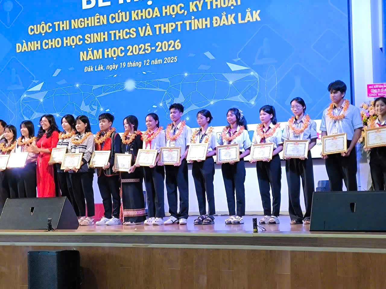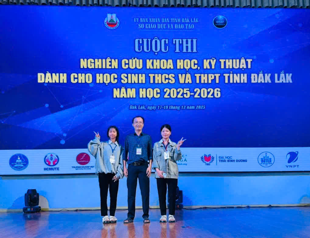 Tại Cuộc thi nghiên cứu khoa học, kỹ thuật dành cho học sinh THCS và THPT năm học 2025–2026 tỉnh Đắk Lắk, dự án: “Phòng chống lừa đảo online trên không gian mạng ở học sinh THPT” (Lĩnh vực Khoa học xã hội và hành vi) đã xuất sắc đạt GIẢI NHÌ chung cuộc. Biểu dương tinh thần sáng tạo và nỗ lực của em H Kiều Long Ding (Lớp 12A1) và em Nông Lục Thị Thu Phương (Lớp 11A2), dưới sự hướng dẫn tận tâm của Thầy Bùi Khắc Linh.