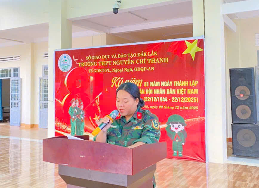 Chiều ngày 22/12/2025, Tổ GDKT-PL, NN, GDQP-AN trường THPT Nguyễn Chí Thanh đã tổ chức thành công buổi ngoại khóa đầy ý nghĩa chào mừng kỷ niệm 81 năm Ngày thành lập Quân đội nhân dân Việt Nam (22/12/1944-22/12/2025)