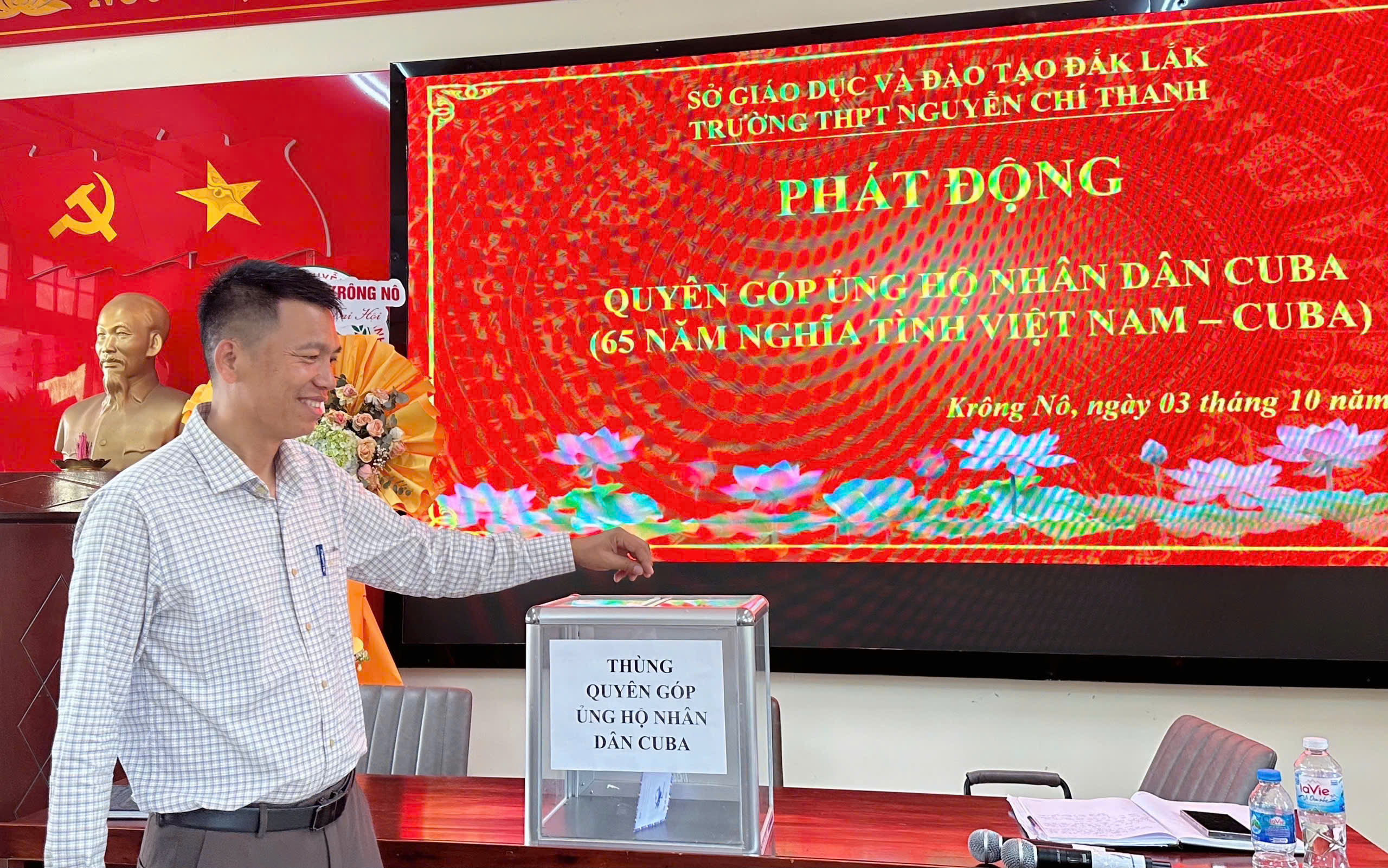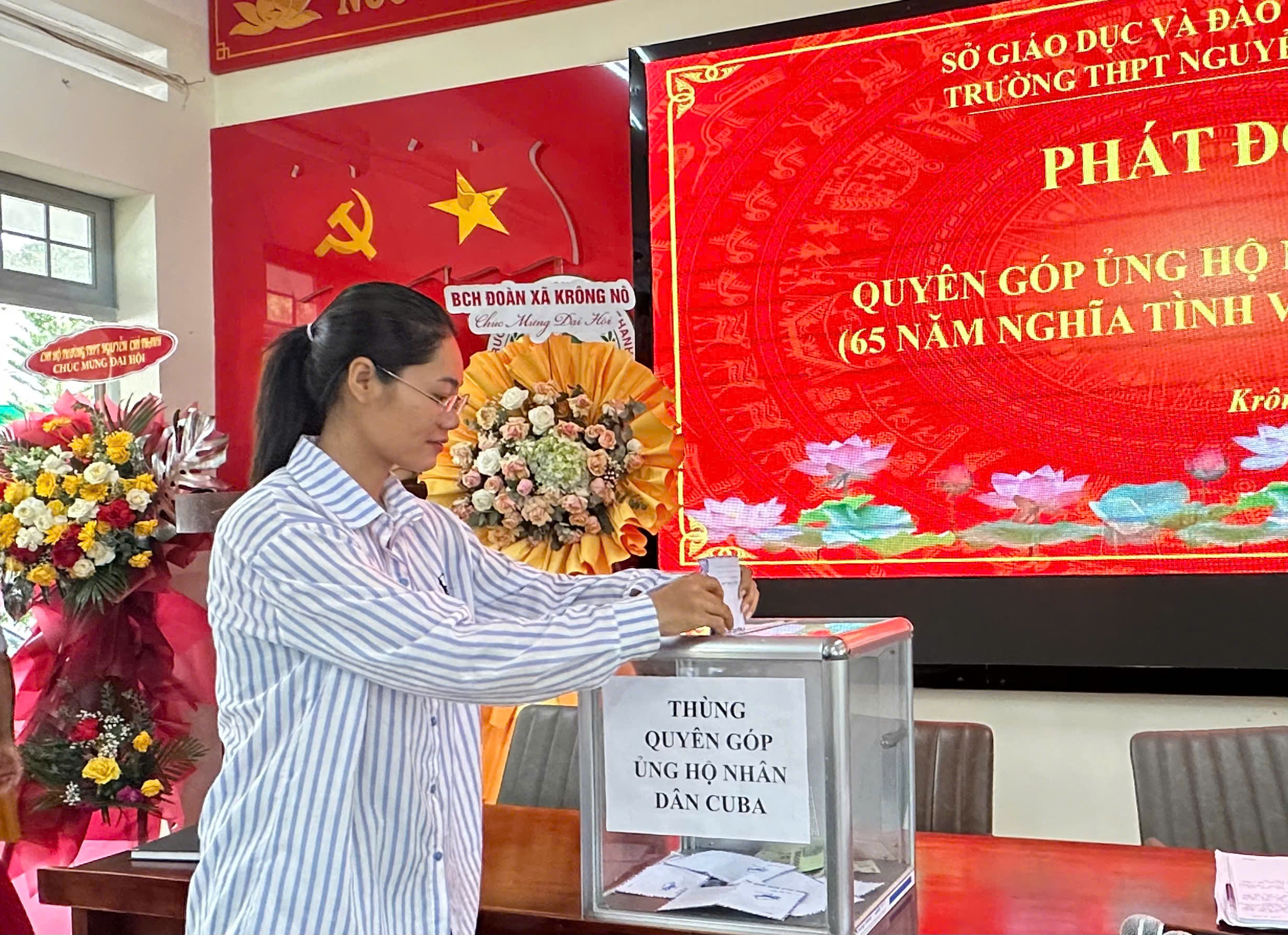 Xin trân trọng cảm ơn tấm lòng vàng của quý thầy cô giáo, cán bộ, công nhân viên và các em học sinh. Những sự đóng góp quý báu ấy sẽ được chuyển trực tiếp đến nhân dân Cuba thông qua Hội Chữ thập đỏ Việt Nam.