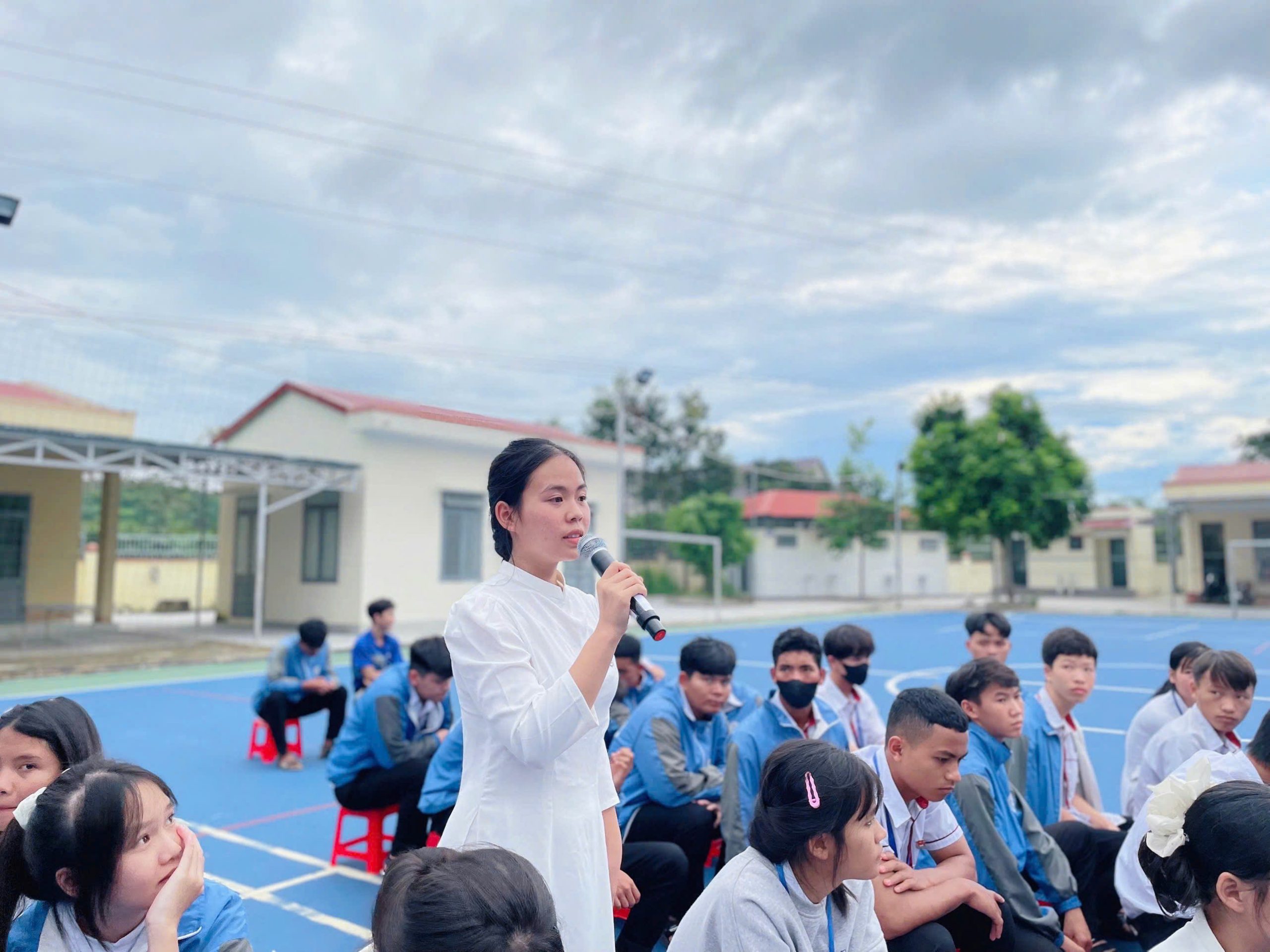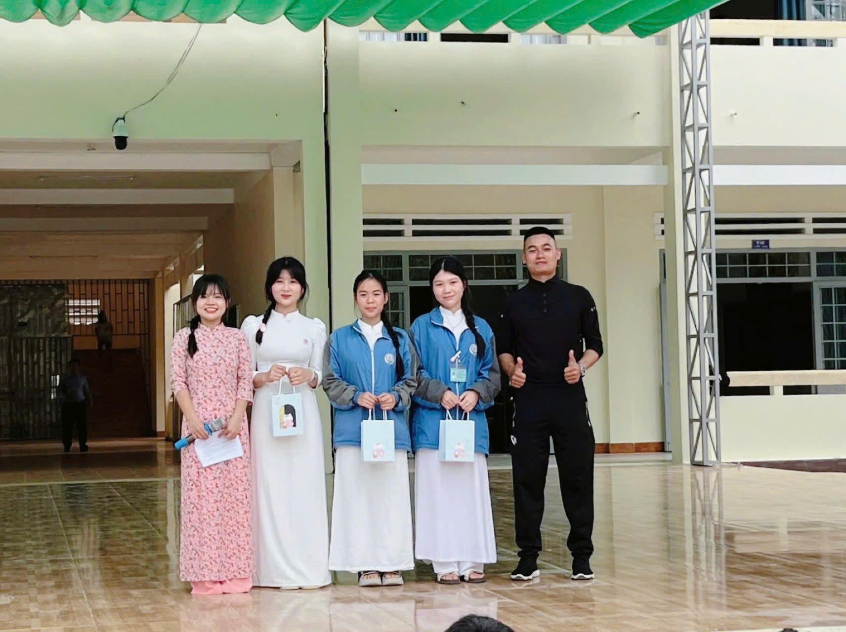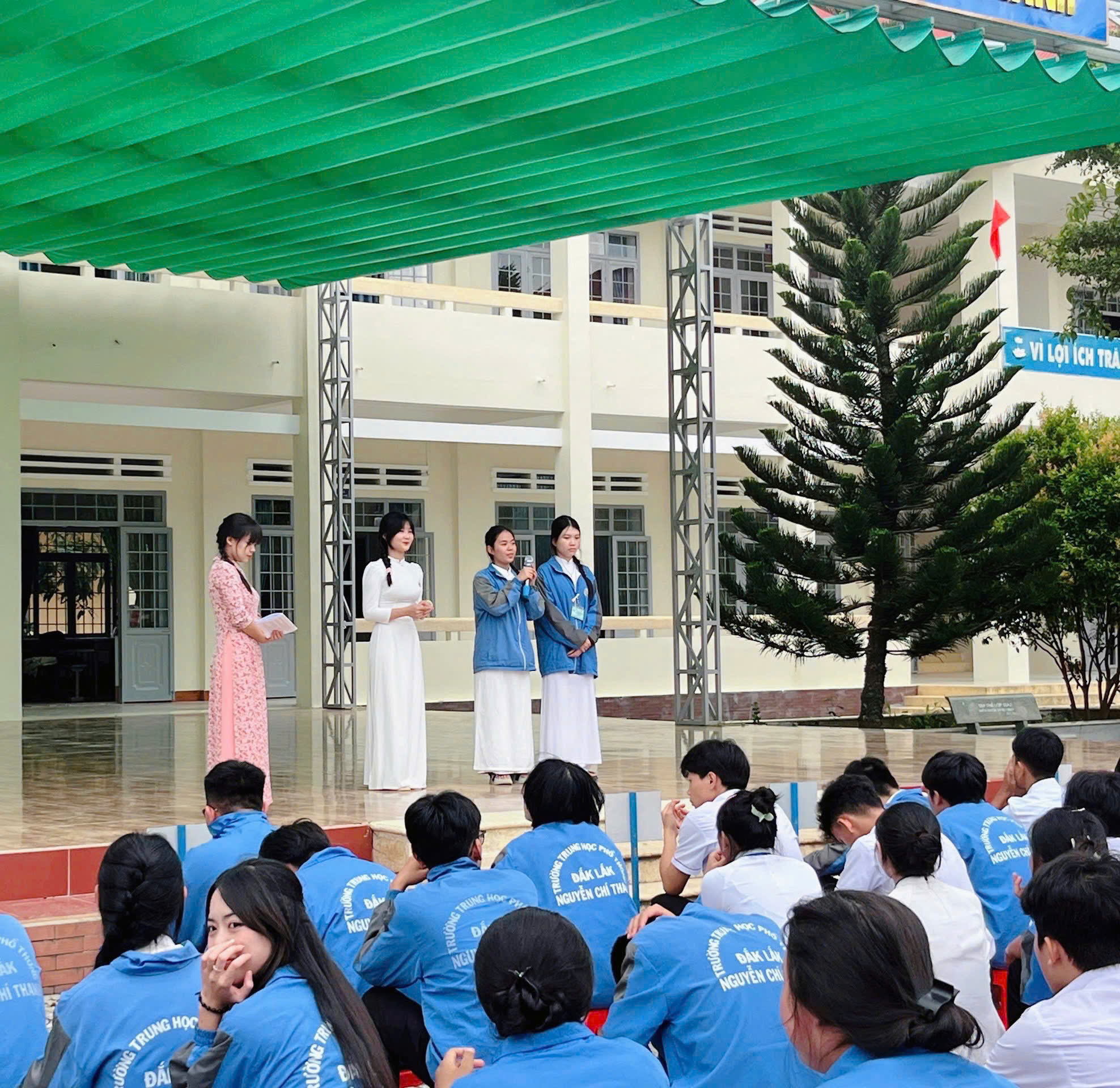Các em học sinh đã được giao lưu, trò chuyện cùng một số tấm gương đoàn viên tiêu biểu – người không chỉ học giỏi, năng động mà còn rất tích cực tham gia các hoạt động văn hóa, văn nghệ của nhà trường, những đoàn viên trẻ nhiệt tình, gương mẫu và đầy trách nhiệm: Đoàn Ngọc Ánh Tuyết – Lớp trưởng lớp 12A1 (Tổ phó tổ văn nghệ xung kích của nhà trường); Nguyễn Thị Thủy Tiên – BT lớp 12A2 (Tổ phó tổ truyền thông, phát thanh của nhà trường); Lý Thị Tiên – Ủy viên BCH Đoàn trường, nhiệm kỳ 2024 – 2025.