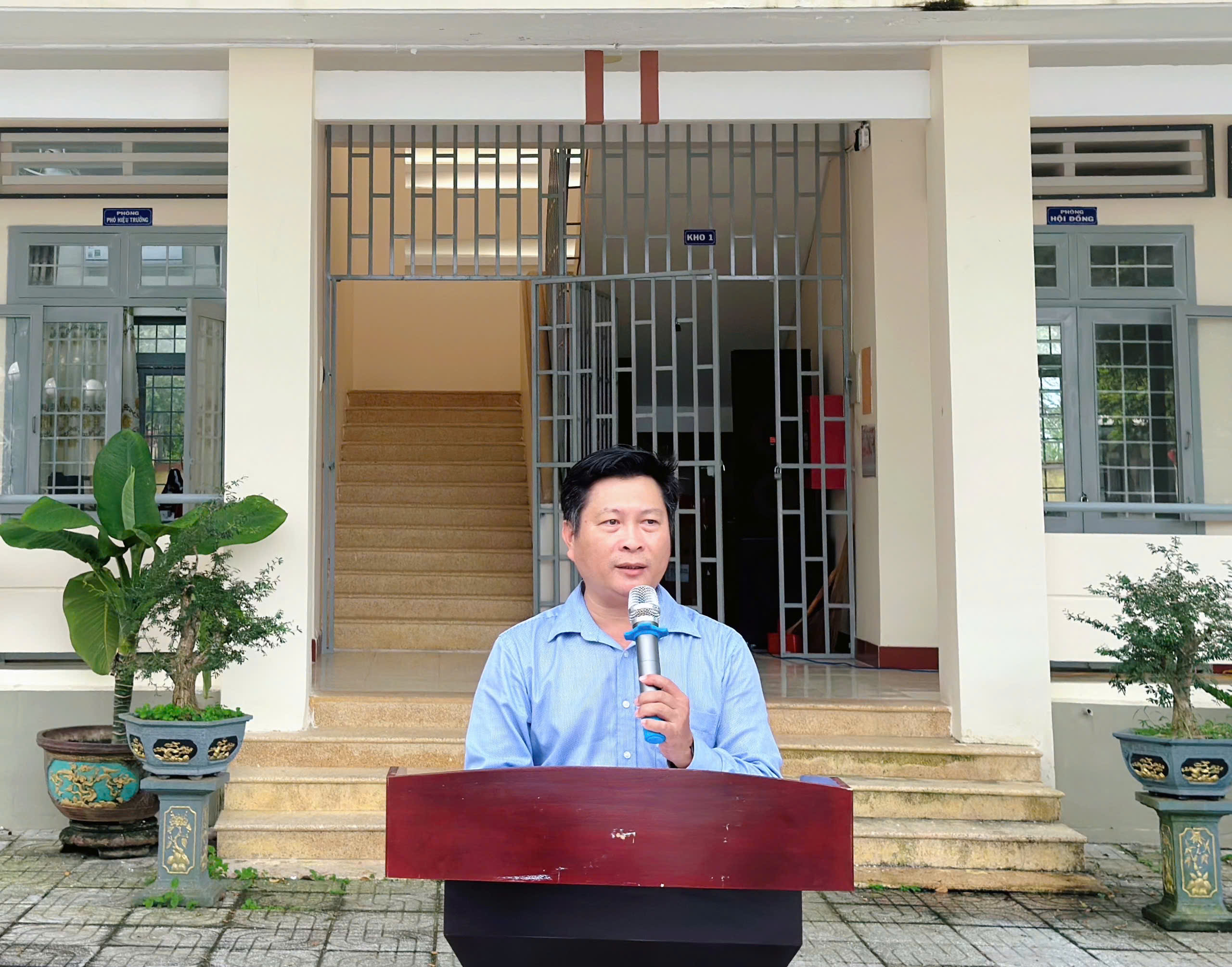 Thầy Phạm Huy Thành – Phó Bí thư Chi bộ, Phó Hiệu trưởng nhà trường phát biểu tại buổi chào cờ