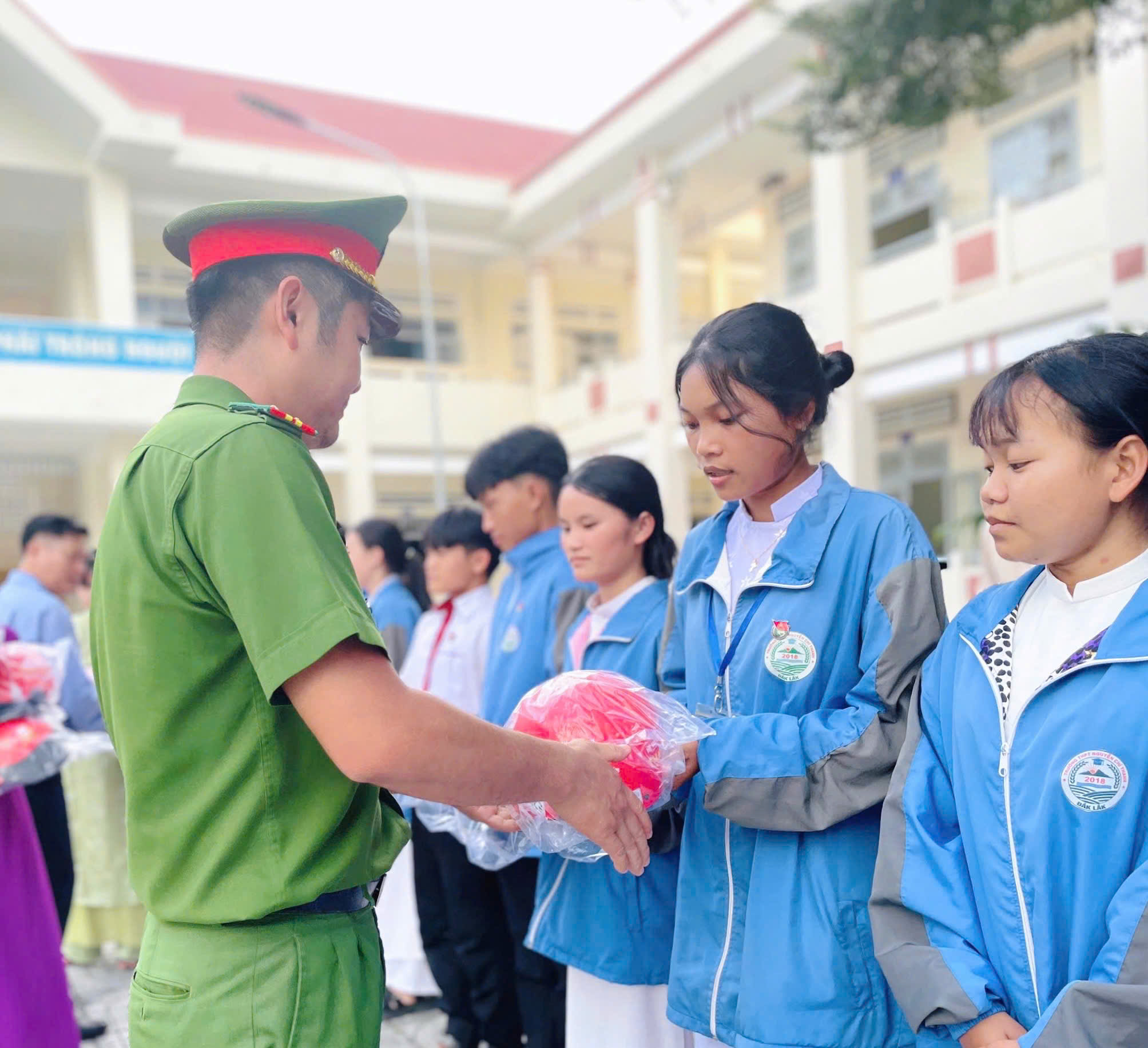 Công an xã Krông Nô tặng mũ bảo hiểm cho các em học sinh có hoàn cảnh khó khăn