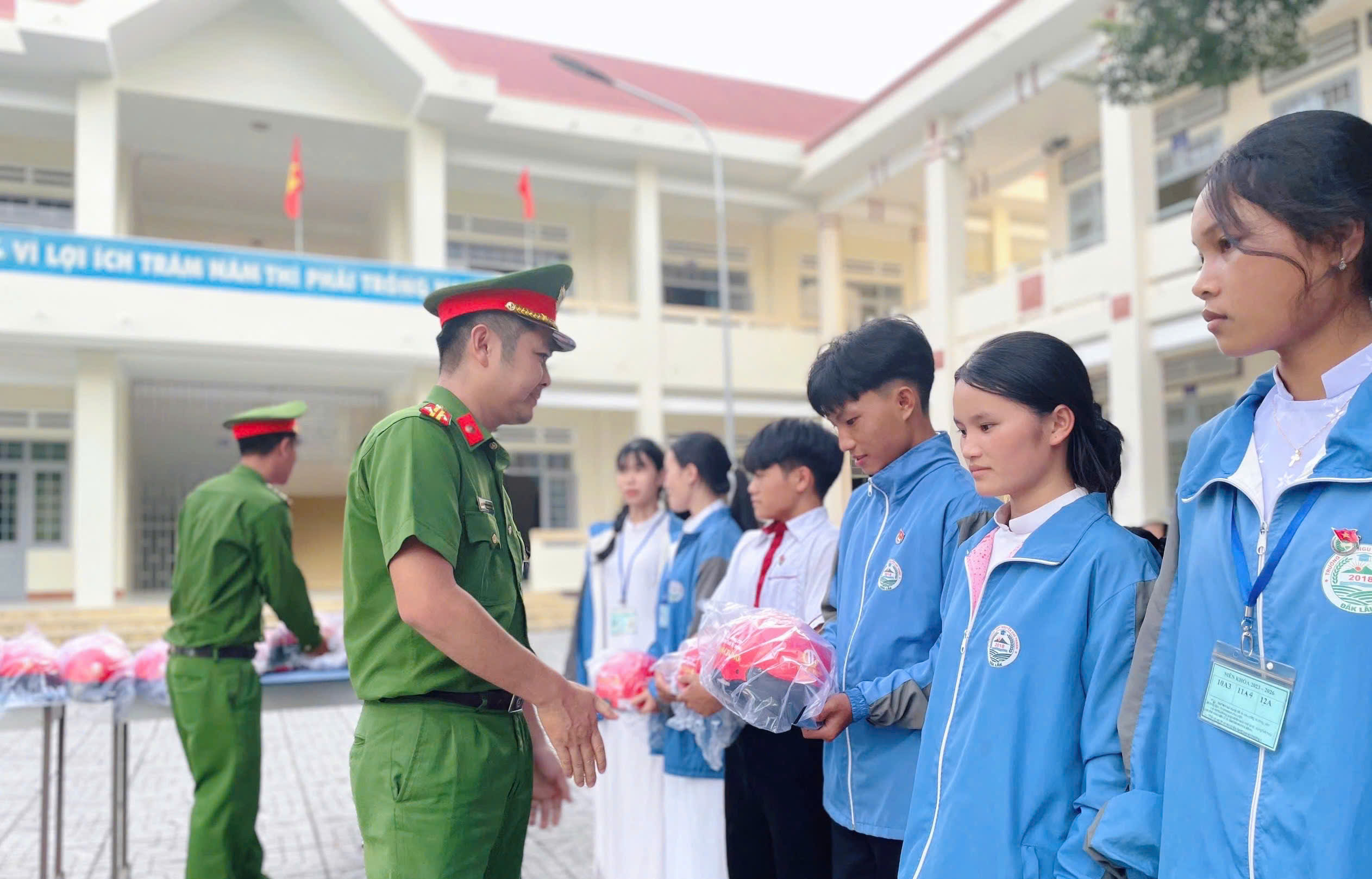 Đặc biệt, trong chương trình, Công an xã Krông Nô đã trao tặng 25 mũ bảo hiểm cho các em học sinh có hoàn cảnh khó khăn, góp phần lan tỏa tinh thần sẻ chia và nâng cao ý thức chấp hành luật an toàn giao thông trong học sinh.