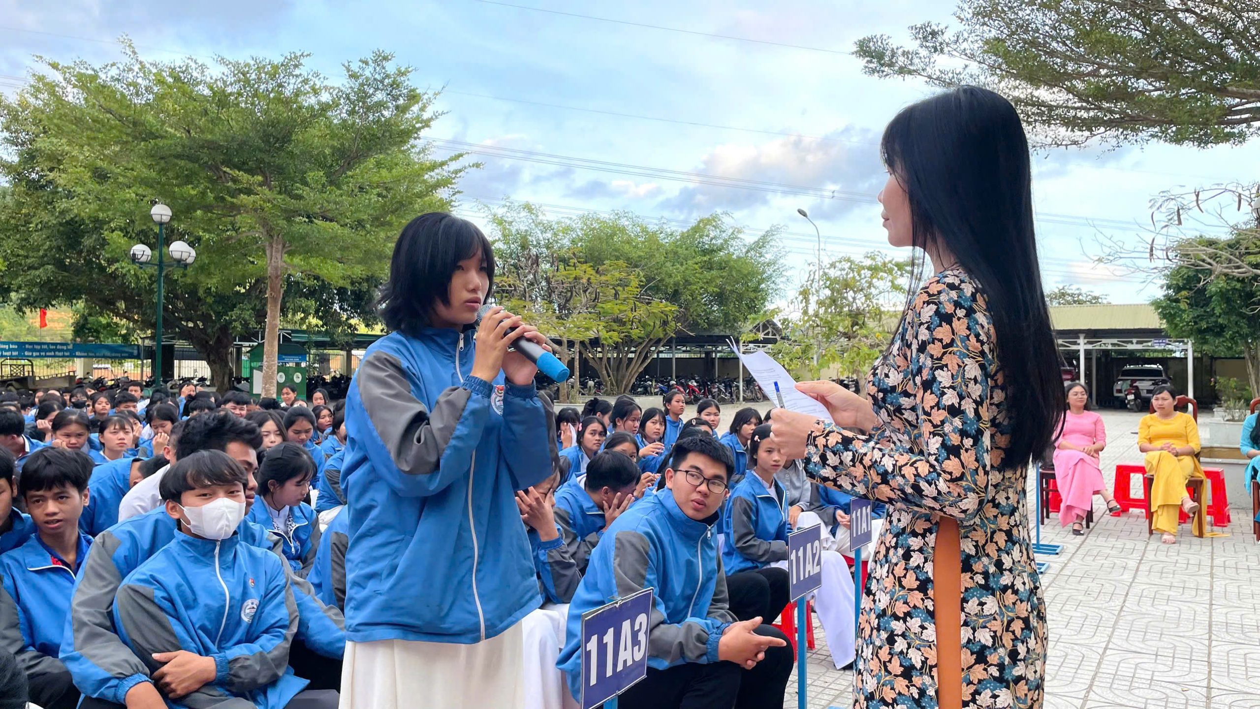 Sinh hoạt dưới cờ tuần 15: cô Võ Thị Chinh GV bộ môn Ngữ văn đã tổ chức sinh hoạt cho học sinh toàn trường với chủ đề: Văn hóa ứng xử trong gia đình – giá trị và ảnh hưởng trong xã hội hiện đại.