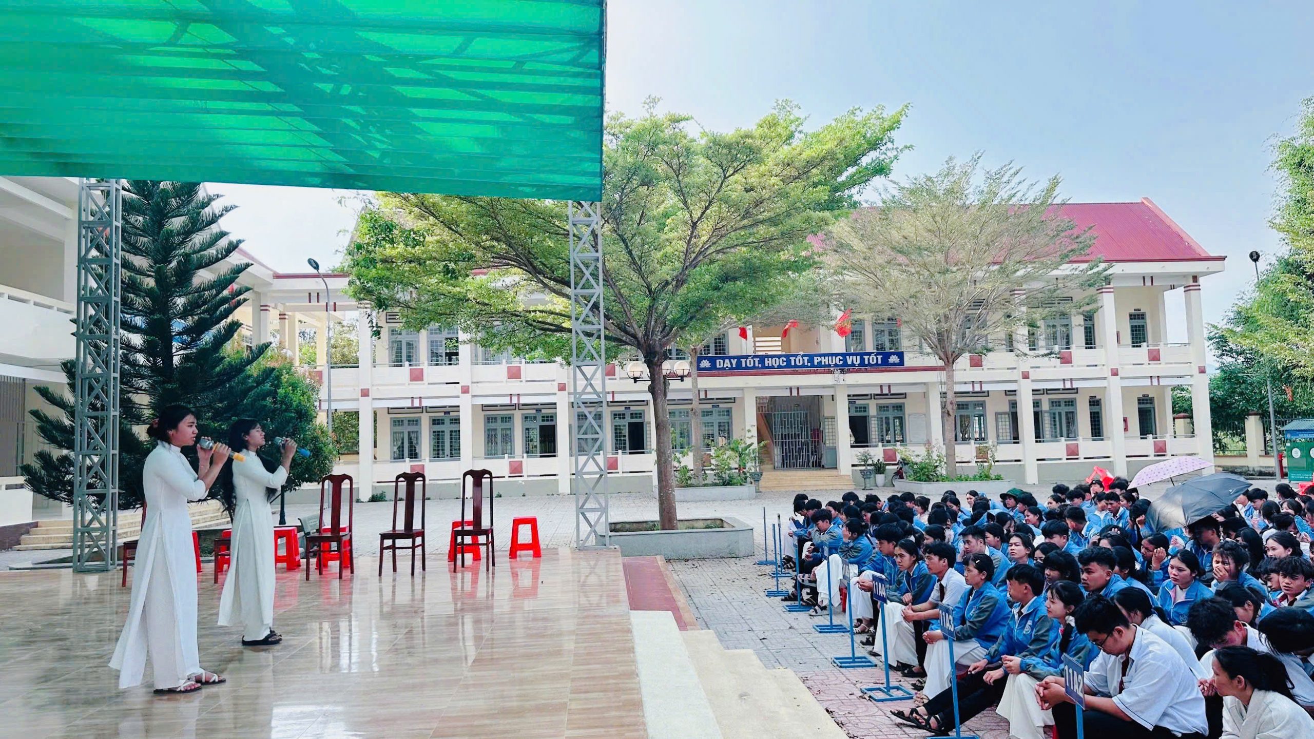 Trong không khí rộn ràng của tháng Ba – tháng của yêu thương và tri ân, chiều ngày 02/03/2026 Đoàn trường THPT đã tổ chức buổi sinh hoạt dưới cờ tuần 24 với chủ đề “Lời yêu thương” nhằm chào mừng Ngày Quốc tế Phụ nữ 08/03.