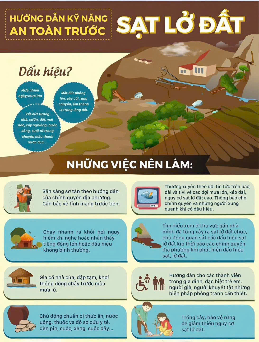 Để chủ động phòng tránh, mỗi học sinh hãy cùng nhau: Theo dõi bản tin dự báo thời tiết và cảnh báo mưa lũ của địa phương; Giúp gia đình chằng chống nhà cửa, dọn dẹp rãnh thoát nước, giữ gìn môi trường sạch sẽ; Báo ngay cho người lớn hoặc chính quyền khi phát hiện nguy cơ sạt lở, nước dâng cao.