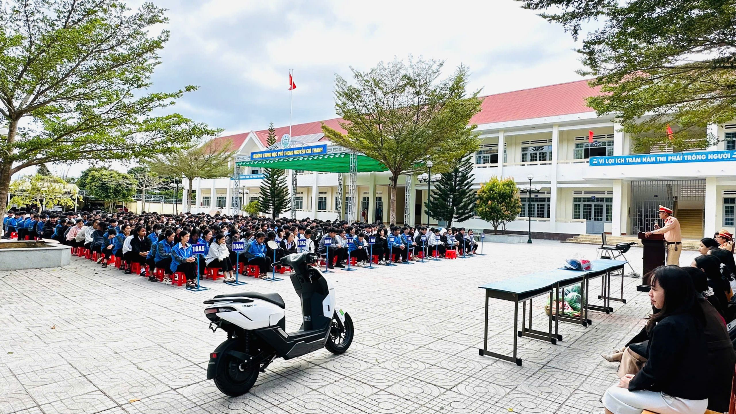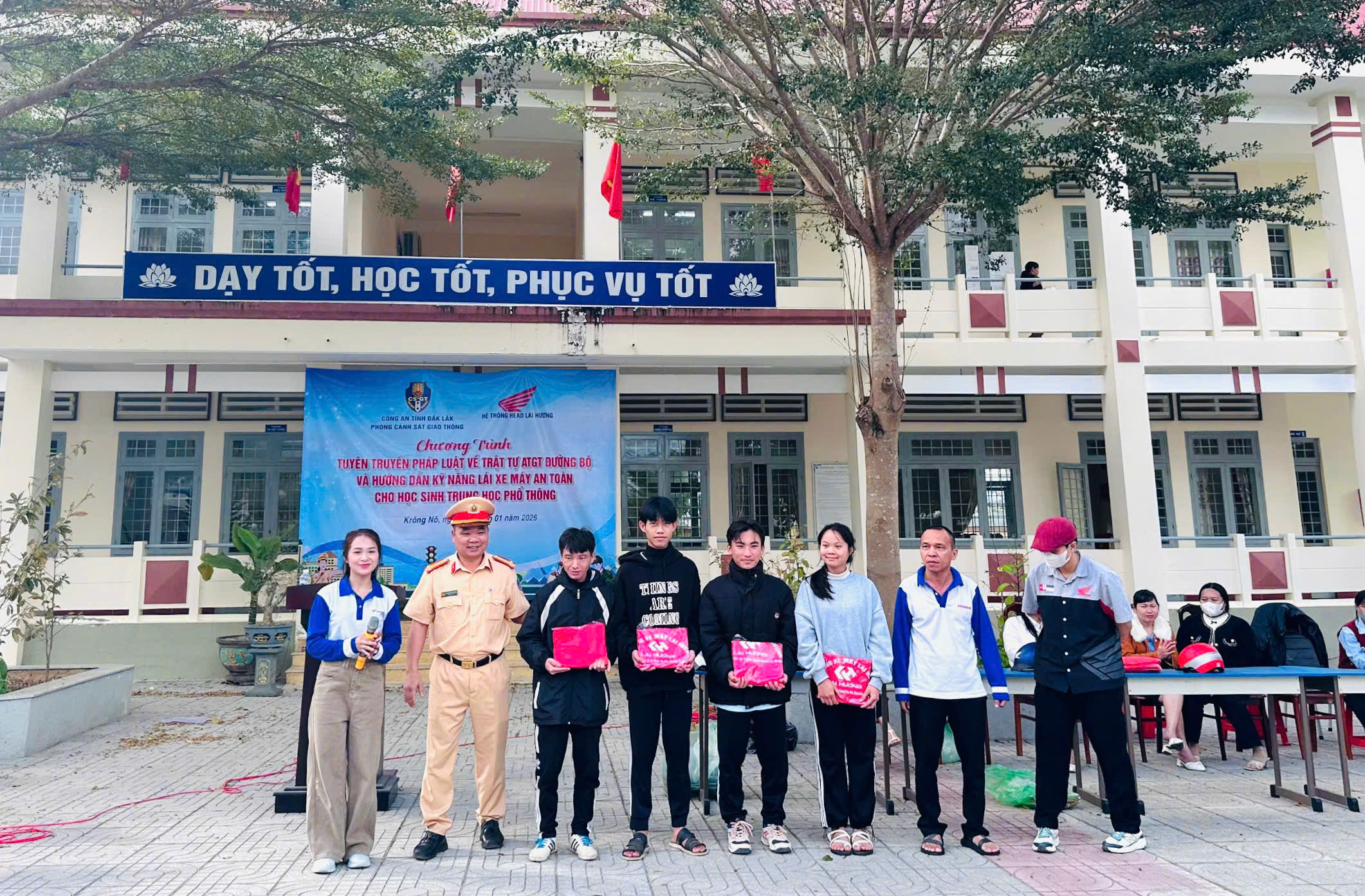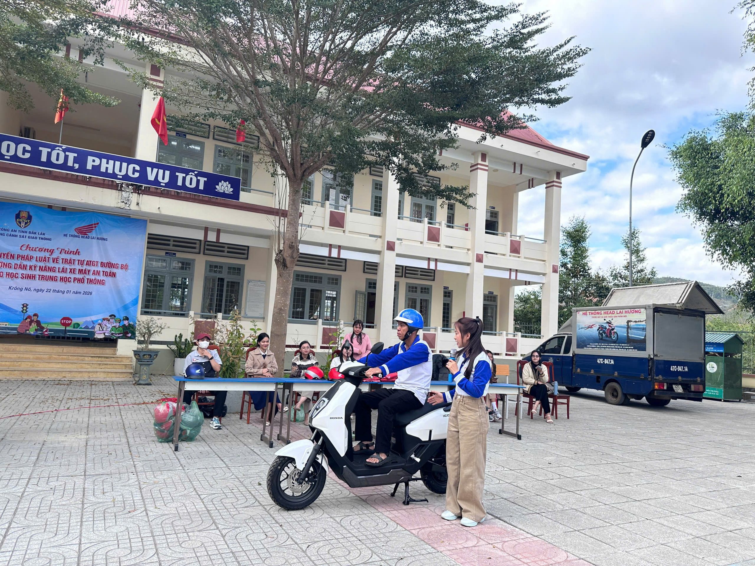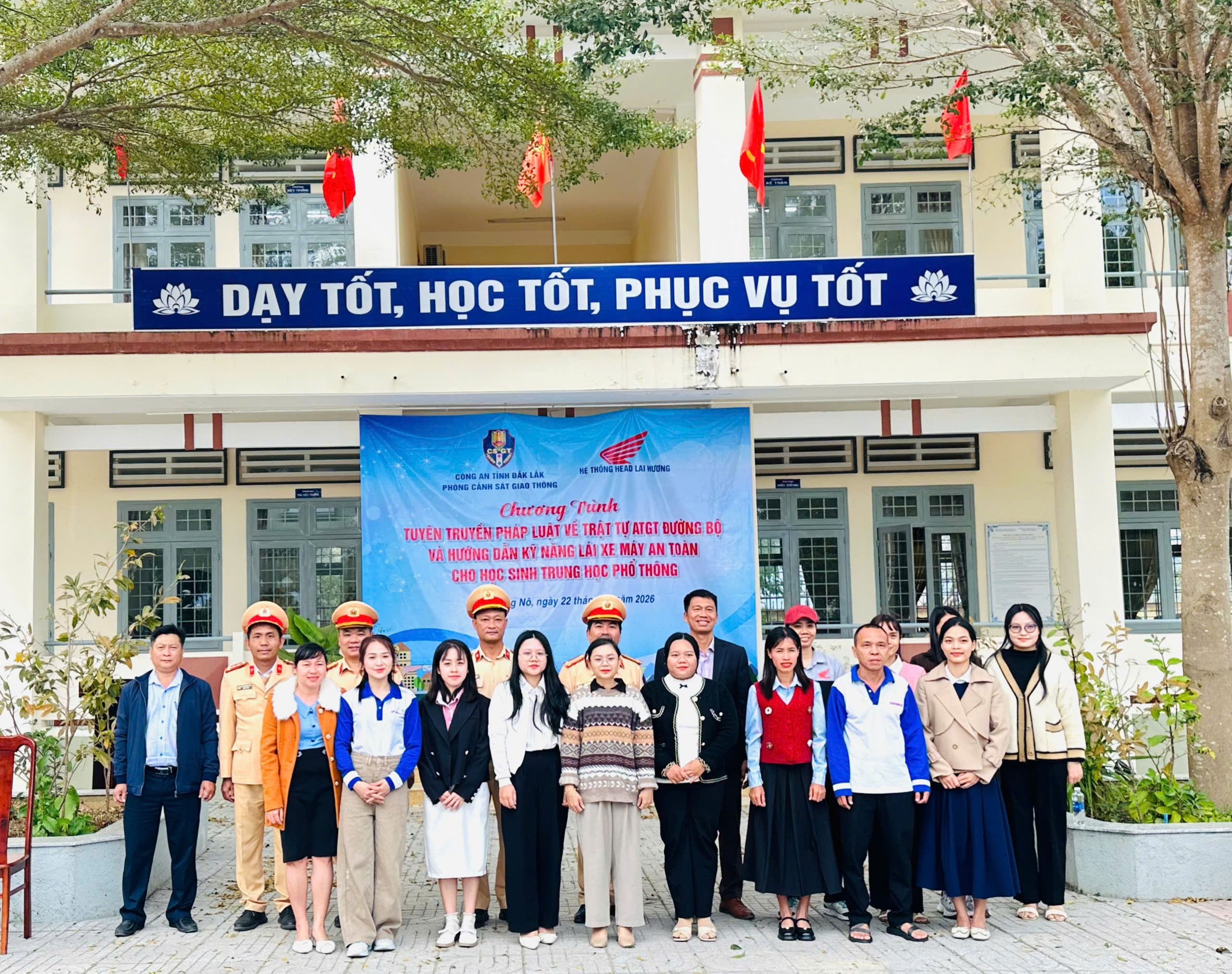 Chiều ngày 22/01/2026, Đội CSGTĐB số 01, Phòng CSGT Công an tỉnh Đắk Lắk đã phối hợp với Hệ thống HEAD Lai Hương có trụ sở tại tỉnh Đắk Lắk tổ chức buổi tuyên truyền pháp luật về trật tự, an toàn giao thông đường bộ và hướng dẫn kỹ năng lái xe máy an toàn cho hơn 500 học sinh trường THPT Nguyễn Chí Thanh.