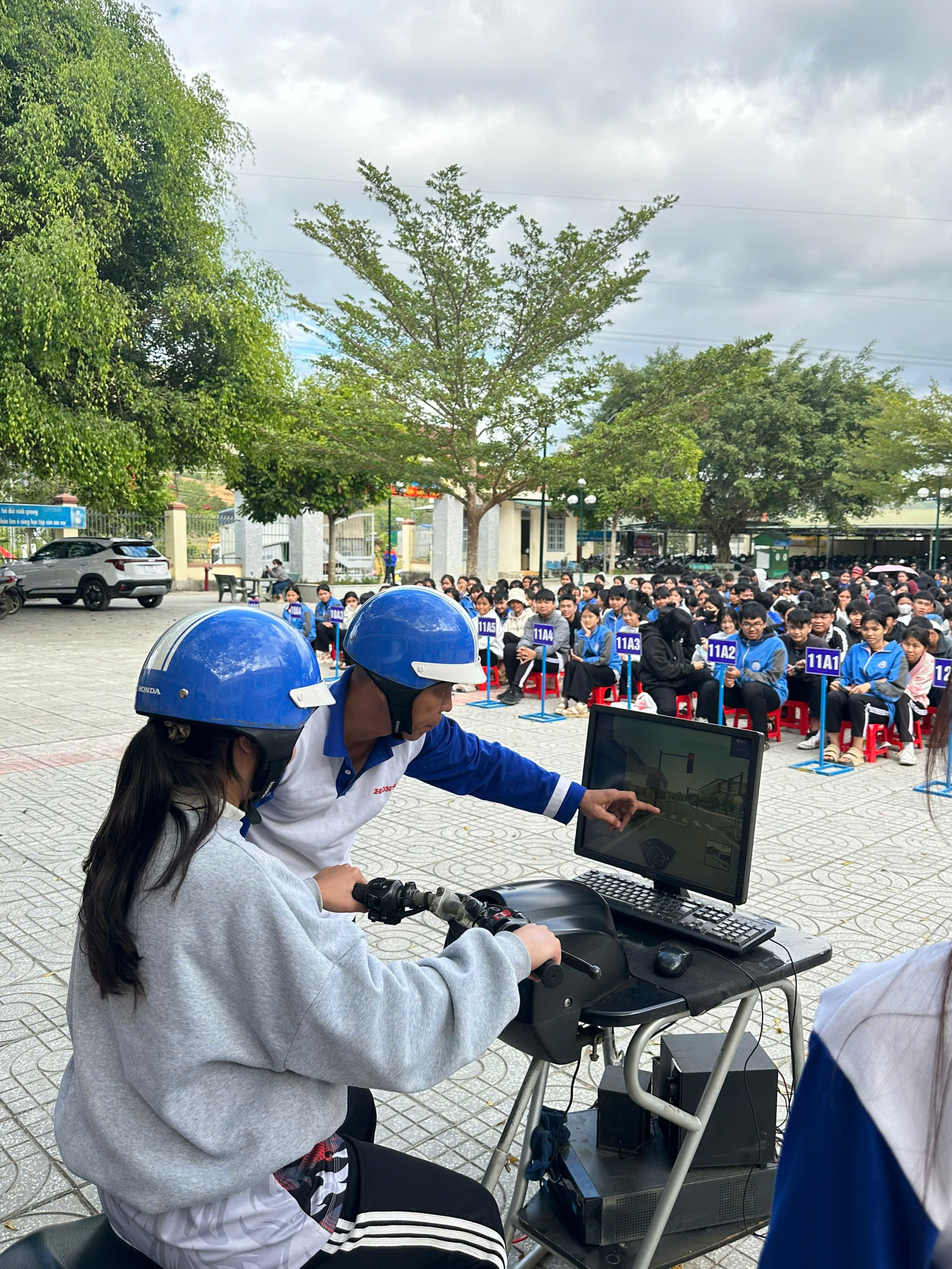 Không dừng lại ở việc tuyên truyền các quy định của pháp luật, buổi tuyên truyền còn chú trọng hướng dẫn các kỹ năng tham gia giao thông an toàn, xử lý các tình huống thực tế thường gặp trên đường, cách đội mũ bảo hiểm đúng cách. Học sinh được thực hành các kỹ năng lái xe an toàn trong môi trường kiểm soát, giúp các em tự tin hơn khi tham gia giao thông thực tế. Buổi tuyên truyền đã giúp các em học sinh nâng cao hiểu biết về pháp luật mà còn giúp xây dựng thói quen tham gia giao thông an toàn. Đặc biệt, hoạt động này đã tạo ra sự quan tâm lớn từ phía phụ huynh và cộng đồng, góp phần xây dựng văn hóa giao thông văn minh trong toàn trường.