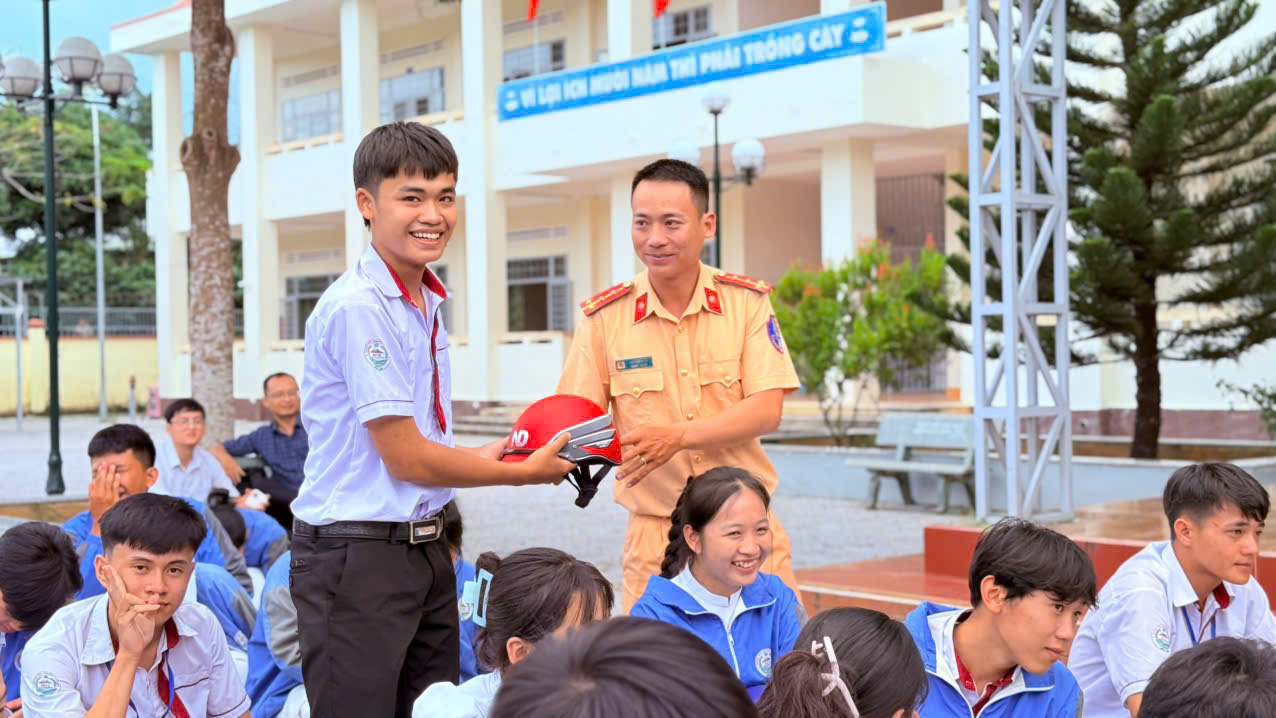 30 mũ bảo hiểm đạt chuẩn được trao tặng đến các em học sinh